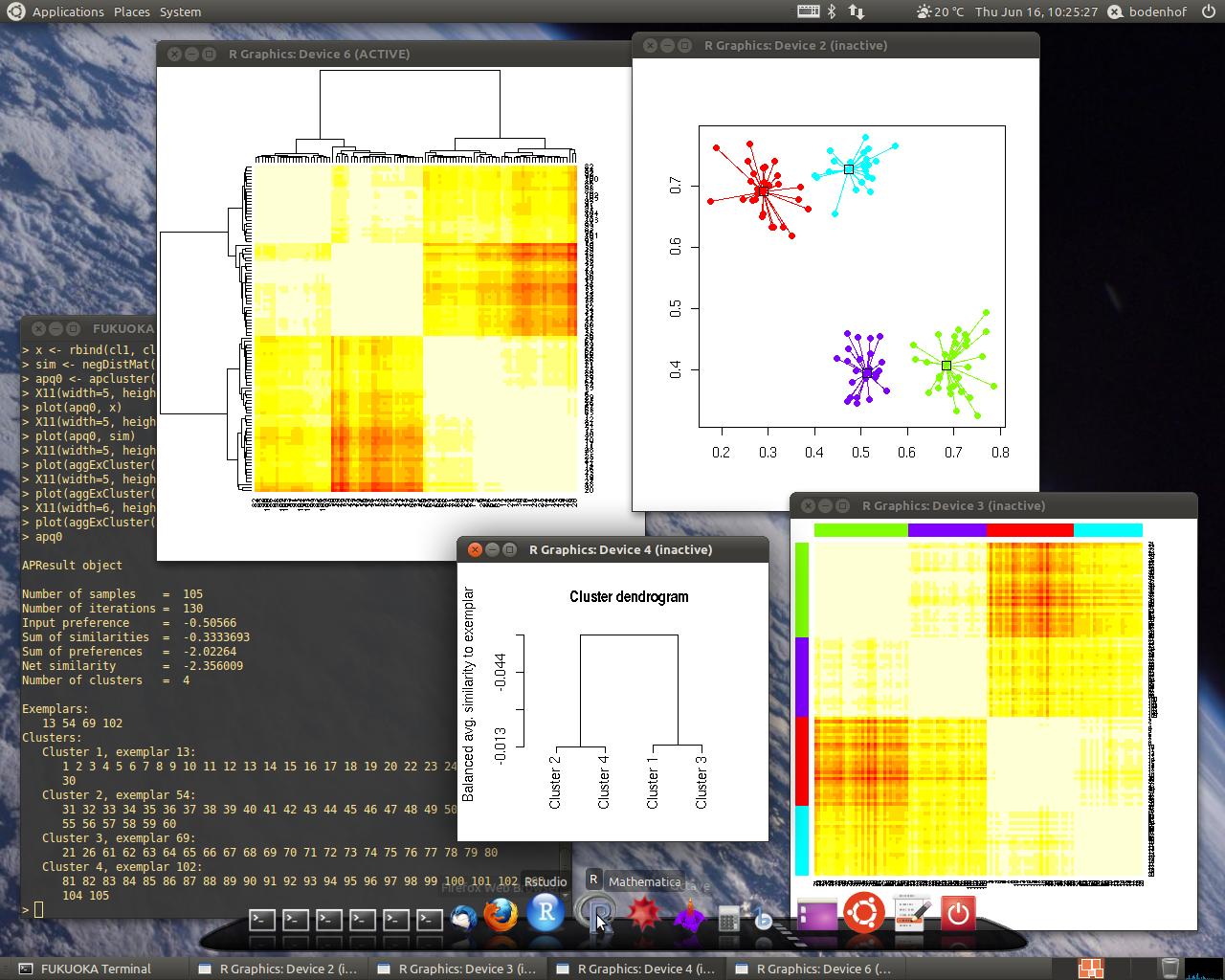 AP has been applied in various fields recently, among which bioinformatics is becoming increasingly important. Frey and Dueck have made their algorithm available as Matlab code. Matlab, however, is relatively uncommon in bioinformatics. Instead, the statistical computing platform R has become a widely accepted standard in this field. In order to leverage affinity propagation for bioinformatics applications, we have implemented affinity propagation as an R package. Note, however, that the given package is in no way restricted to bioinformatics applications. It is as generally applicable as Frey’s and Dueck’s original Matlab code.
