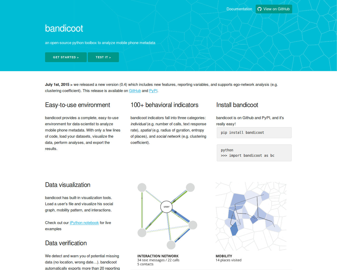 About: An open-source Python toolbox to analyze mobile phone metadata. Changes:Initial Announcement on mloss.org.