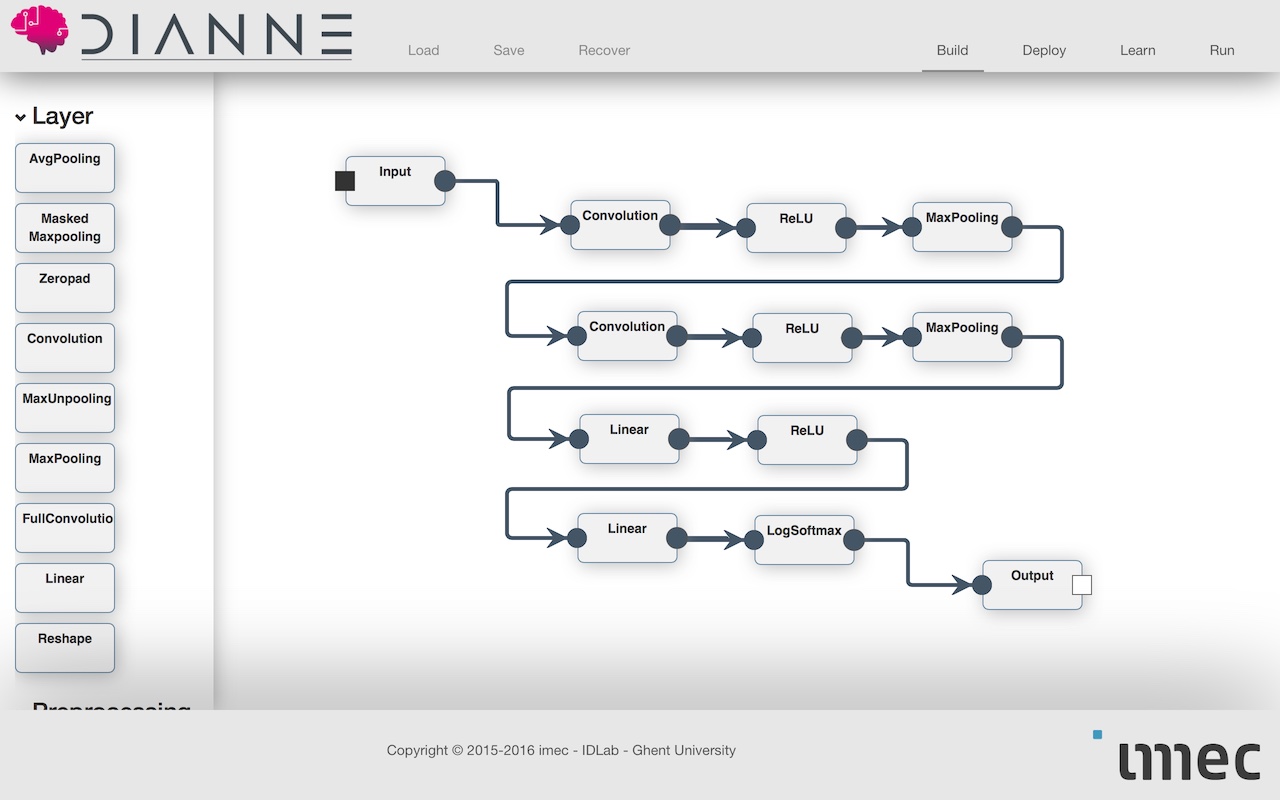 About: DIANNE is a modular software framework for designing, training and evaluating artificial neural networks on heterogeneous, distributed infrastructure . It is built on top of OSGi and AIOLOS and can transparently deploy and redeploy (parts of) a neural network on multiple machines, as well as scale up training on a compute cluster.