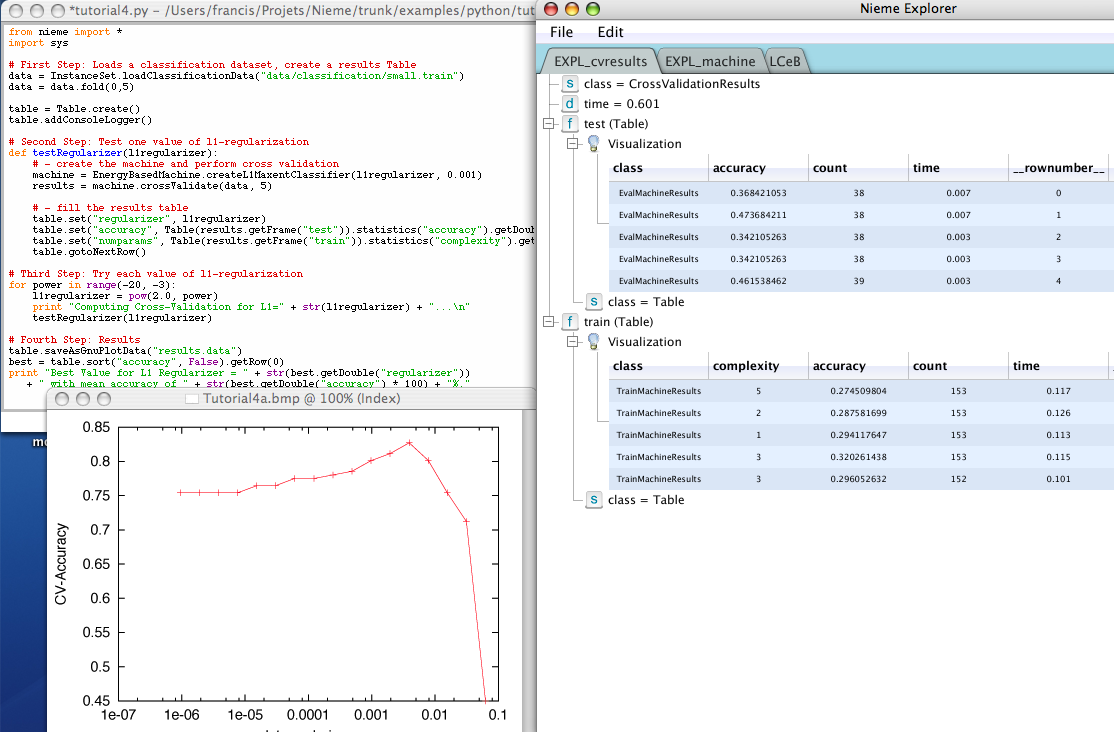 About: Nieme is a C++ machine learning library for large-scale classification, regression and ranking. It provides a simple interface available in C++, Python and Java and a user interface for visualization. Changes:Released Nieme 1.0